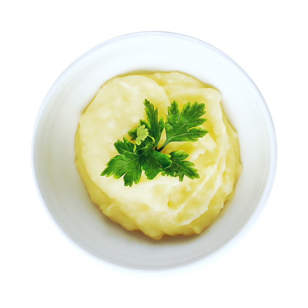 Наше картофельное пюре готовится из отборного картофеля, свежего молока, сливочного масла и соли, что придает ему неповторимый вкус и кремовую текстуру.