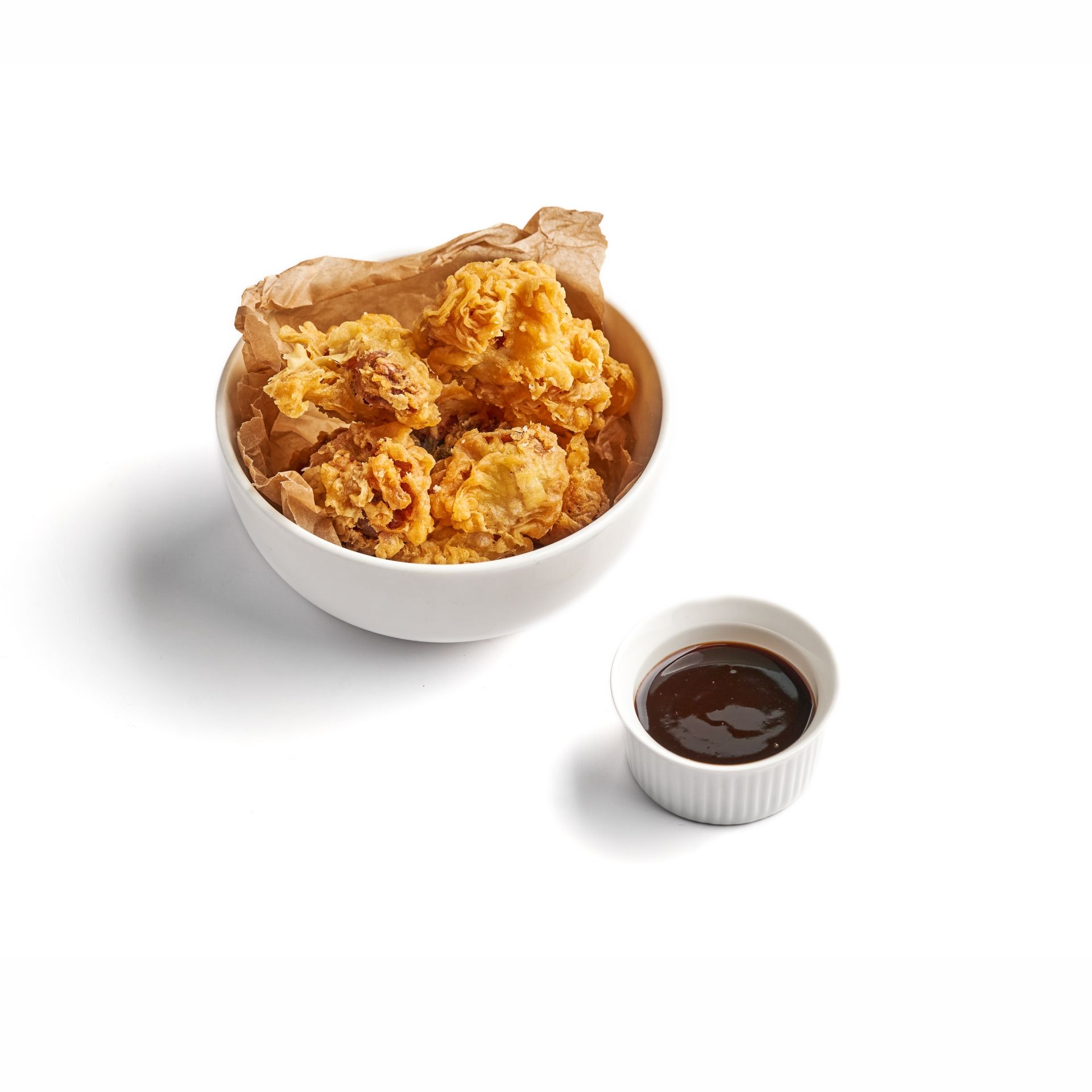 Маринованные куриные крылышки в хрустящей корочке. Подаётся с соусом «BBQ»