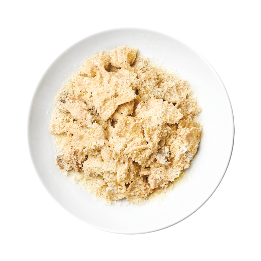 Мы предлагаем вам насладиться восхитительным сочетанием фарфалле, куриного филе, шампиньонов, сыра пармезан и сливок, приправленных растительным оливковым маслом и солью.